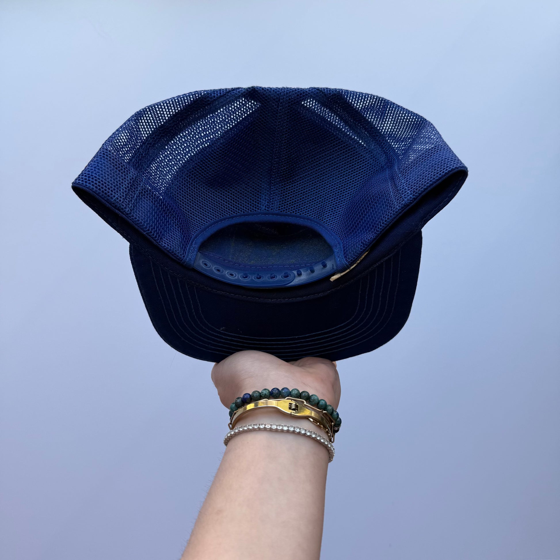 Vintage American Flag Patch Blue Trucker Hat